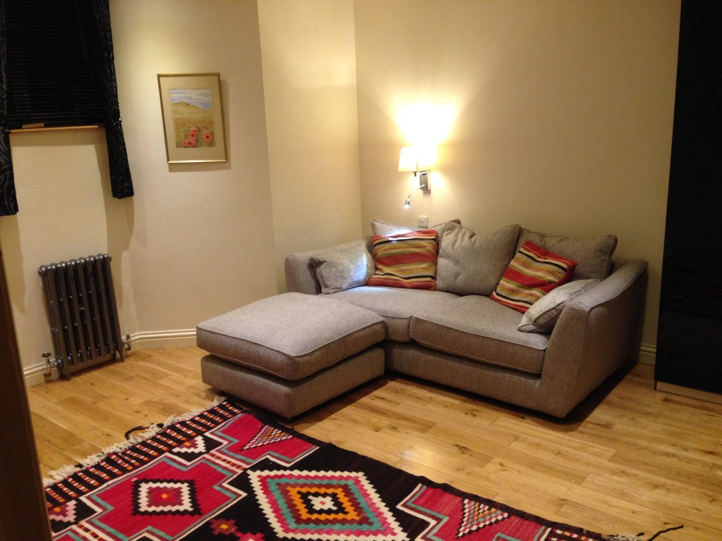 A stone staircase from the kitchen leads to the basement which houses a utility area complete with washing machine and dryer. The basement also has a comfortable sitting room with internet enabled TV.